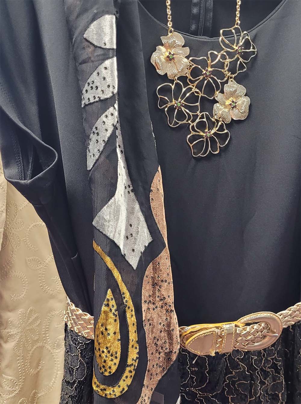 - Pair a thrifted mocha-toned cardigan with black leggings and an ivory scarf for a cozy, casual outfit.