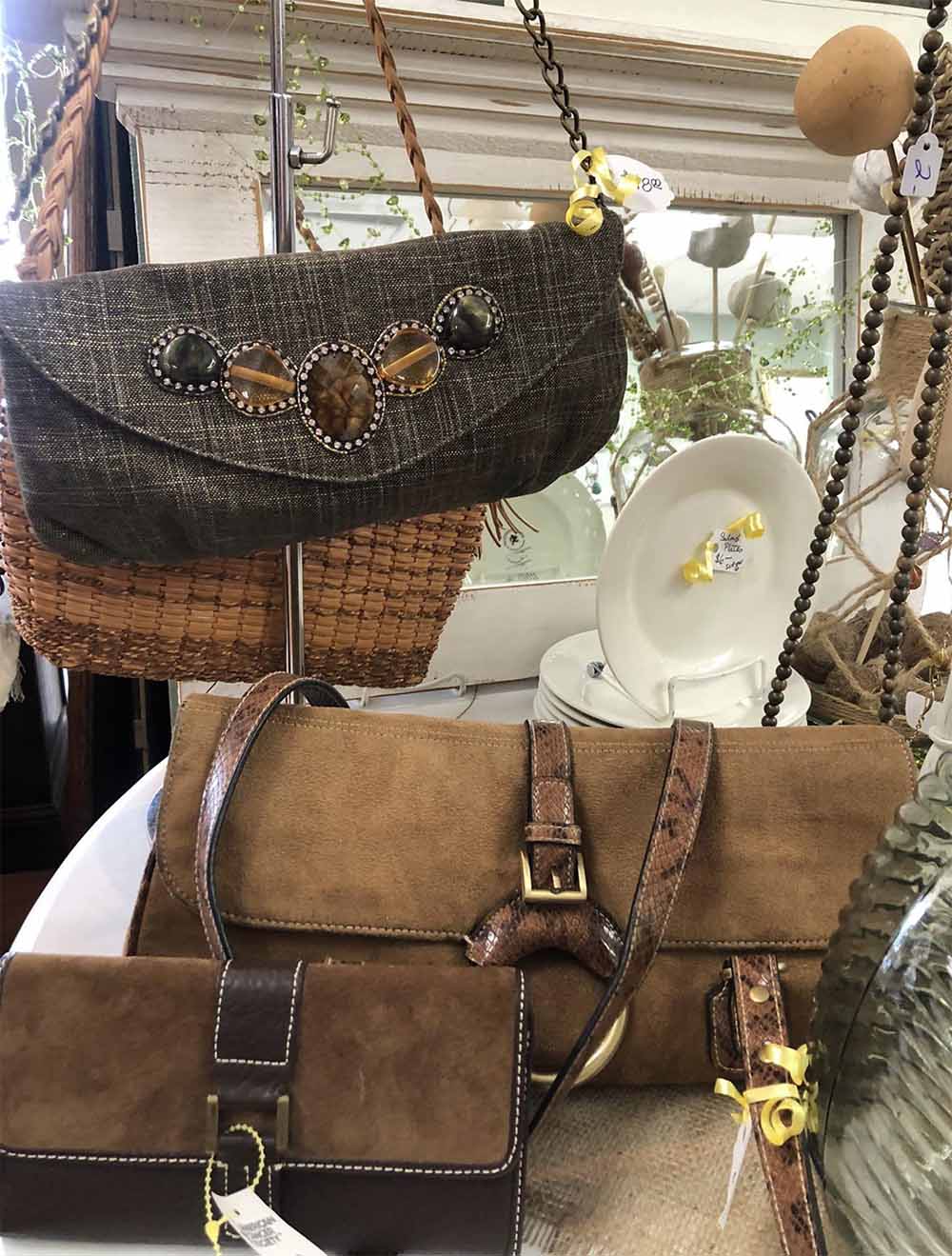 - Add a vintage brown handbag to tie your outfit together.